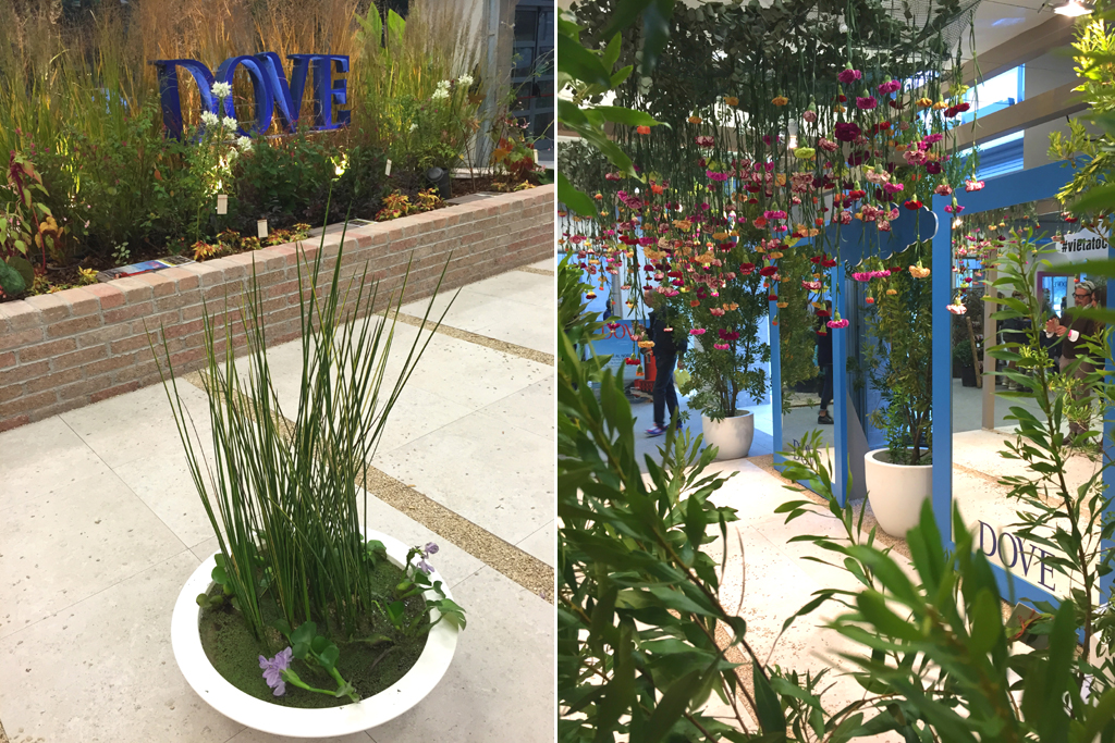 The garden presented at Orticolario 2015 for DOVE Magazine RCS is the simplicity and beauty. In a large brick planter, built as it was once in the gardens of the country, it was placed a small garden with ornamental grasses, small shrubs, perennials and herbs to celebrate the transition between the end of summer and the beginning of fall season. Sitting on the edge of the planter you can closely observe the colours of the flowers and smell the scents. You can touch the plants, many of those selected for the foliage that stimulates the sense of “touch”, this year Orticolario theme. On the floor around the planter you can meet micro-water gardens because even with the water you can stimulate the sense of nature and touch. In this sort of square or courtyard, embellished by a cascade of hundreds of suspended multicolour carnations with magic mirrors to expand the space, visitors to the event were able to relax and find out, as in a home garden, the DOVE world.